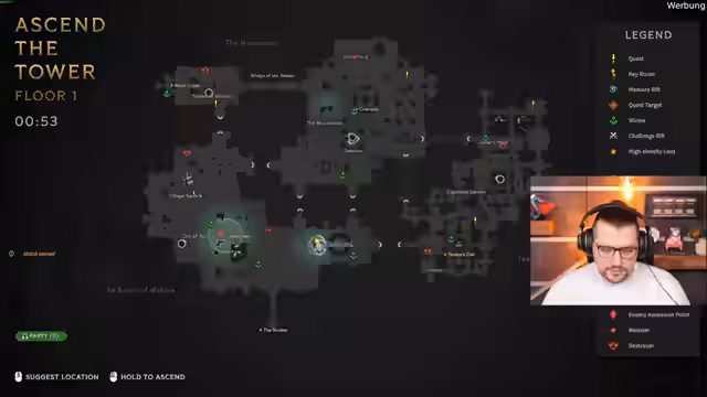 01:34:38Nachdem das Team alle drei Quest-Truhen gesammelt hat, wird die Extraktion zur nächsten Ebene angestrebt. Der Extraktionspunkt ist von feindlichen Teams umkämpft. Während des Aszendierungsprozesses wird erklärt, dass getötete Teammitglieder automatisch wiederbelebt werden und mit auf die nächste Ebene aufsteigen, was ein wichtiger taktischer Vorteil ist. Es wird auch auf die Wichtigkeit von "Fortitude Shards" für das Schild-HP-System hingewiesen.