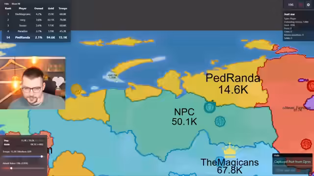 03:21:59Es wird erwähnt, dass der Streamer diese Woche eine Runde hochdriven wollte und dies morgen nachholen möchte. Morgen soll ein Driving is Hard Stream stattfinden, um das Spiel durchzuballern. Der Streamer hat bereits zwei Stunden Spielzeit, möchte aber morgen von vorne anfangen und versuchen, das Spiel durchzuspielen. Die Zuschauer können dem Open Front-Link im Chat beitreten, um mit dem Handy oder PC in der Lobby dabei zu sein und sich ein Ackermatch zu liefern. Open Front wird als vereinfachte Version von Risiko erklärt, bei dem man durch Linksklicks Gebiete erobern kann. Mit Slidern kann man die Anzahl der angreifenden Truppen und das Verhältnis von Truppenproduktion zu Worker-Produktion einstellen. Worker sammeln Gold, mit dem Gebäude gebaut werden können. Es gibt vier Gebäudetypen: Häfen, Städte, Defense Points und Silos für Raketen. Der Streamer startet das Spiel mit 131 Leuten und platziert sich in Asien/Mexiko, da er sich dort wohlfühlt. Er mag es, an der Küste zu sein, um direkten Zugang zur See zu haben. Der Streamer erobert Gebiete, schließt Freundschaften und produziert Truppen, um sich gegen Angriffe zu verteidigen.