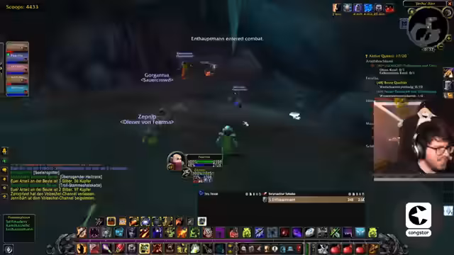 01:50:39Die Gruppe navigiert durch eine komplexe Dungeon-Struktur mit mehreren Ebenen und Verzweigungen, wobei der Verlauf oft unklar ist und durch Experimentieren oder Erinnerungen an Guides bestimmt wird. Ein Fokus liegt auf dem Fortschritt von Klassenquests, bei denen spezifische Gegner (z.B. Troll-Wächter) oder Questobjekte (z.B. ein blutendes Ei) gefunden und interagiert werden müssen. Dies führt zu strategischen Entscheidungen darüber, welche Gegner gepullt und welche übersprungen werden.