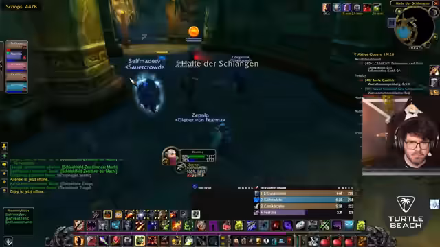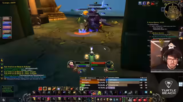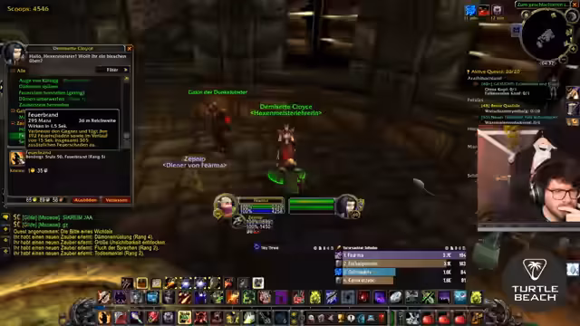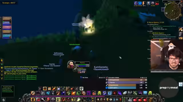 00:00:00Zu Streambeginn werden Quests im Gebiet Darkshire diskutiert. Es geht um die Rettung von Sharpbeak und den Abschluss der dazugehörigen Questreihe, die viel Erfahrungspunkte bringt. Der Streamer plant, danach eine lange Such-den-Tempel-Quest in Stormwind anzunehmen, um den Zugang zum Tempel des Blackwing zu ermöglichen, der jedoch als zu stark für die aktuelle Gruppe eingestuft wird. Stattdessen wird ein Dungeon-Besuch im Scharlachroten Kloster in Betracht gezogen, um den Levelaufstieg zu beschleunigen und Ausrüstung zu farmen.