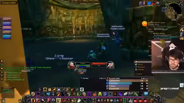 00:38:10Die Gruppe beginnt die Erkundung des Tempels und stellt schnell fest, dass es sich um ein labyrinthartiges Gebiet mit mehreren Ebenen, Balkonen und Elites handelt. Die Orientierung fällt schwer, da der Streamer den Weg teilweise vergessenen hat. Die Strategie besteht darin, die Mobs vorsichtig und einzeln zu pullen, um sich nicht zu überlasten. Besondere Aufmerksamkeit gilt den Castern, die kontrolliert und aus der Distanz bekämpft werden müssen. Die Gruppe nutzt Banishing-Abilities, um bestimmte Gegner vorübergehend auszuschalten und so das Chaos zu reduzieren.