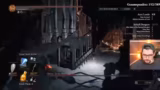 08:13:29Leon navigiert durch das Gebiet der Kathedrale der Tiefe und sucht nach Punkten durch das Besiegen von NPCs und Minibossen. Er kämpft gegen zwei Riesen hinter der Kathedrale, um die vollen Punkte zu erreichen. Dabei zeigt er Unsicherheit bei der Orientierung und nutzt Tipps des Chats, um Wege und Shortcuts zu finden. Nach den Kämpfen sucht er nach weiteren Items wie Titanite Scales.