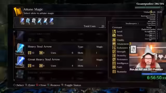 01:01:27Um 14 Uhr beginnt der offizielle Run des Streamers mit einem gezielten Zeitmanagement. Das Ziel ist es, in unter 8 Stunden 48 Minuten Lord Pappnase zu schlagen. Der Streamer plant, durch gezielte Bosse-Spiele und effiziente Routenbildung Punkte zu sammeln. Eine wichtige Rolle spielt dabei der Einsatz von Magie und Lichtzaubern, um besonders dunkle Gebiete sicher zu durchqueren.