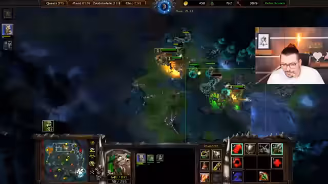 04:21:16Der Streamer konfrontiert mit mehreren Herausforderungen während des Spielverlaufs. Er muss sich ständig um die Verteidigung seiner Basis kümmern und stellt fest, dass er sich zu viel auf hinten konzentrieren muss. Gleichzeitig versucht er, seinen Haupt-Held wiederzubeleben und stellt fest, dass sein Inventar voll ist. Er äußert Frustration über seinen Spielstil und stellt fest, dass er das Spiel beenden muss, sonst verliert er. Der Streamer reflektiert auch über Map-Control und frühzeitiges Expandieren als wichtige Aspekte, die er noch verbessern muss.