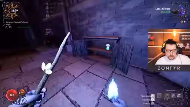 05:21:26Im weiteren Verlauf des Streams entdeckt der Streamer einen bisher unbekannten Zauber namens 'Offer', der das Tauschen von Plätzen mit anderen Spielern ermöglicht. Er testet die Funktionsweise des Zaubers und stellt fest, dass dieser einen Cooldown hat. Gleichzeitig werden Gegenstände wie 'Phoenixfeder' und 'Krankenstein' erwähnt, die wahrscheinlich für das Aufbauen von Ausrüstung und für das Wiederbeleben von Teammitgliedern in speziellen Räumen mit Beschwörungskreisen genutzt werden.