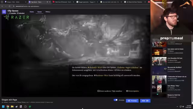 11:09:10Der Streamer erlebt eine plötzliche Aktion, in der er einen Gegner "gestochen" hat, ohne zu wissen, wie. Seine Maus hat einen Bug, weshalb er sich nicht bewegen kann. Im Spiel wird nach Loot wie Spritzmittel, einem Motor und Scheinwerfern gesucht. In einem Haus wird eine AK gefunden, die aber keine Munition hat. Später wird ein "perfekter Herbie" mit Waffen wie Schockgammunition beschrieben. Die Aktion ist schnelllebig und von Entdeckungen geprägt, die Aufregung erzeugen.
