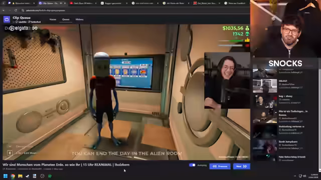 09:47:13Zu Beginn des Streamabschnitts entwickelt der Streamer spontan eine Fantasie, in der er einen Hund im Büro hätte, um damit Pipo glücklich zu machen. Sein Gedankengang wechselt abrupt zur irischen Musik, wobei er seine anfängliche Annahme, dass die Band Dropkick Murphys irisch ist, korrigiert und feststellt, dass es sich um eine US-Band handelt. Er nimmt diese Erkenntnis humorvoll und beschreibt es als "meine Schmuckmuschel", und macht sich über seine frühere Täuschung lustig, bevor er sich vor dem Kunden "gepuppt" hat, was er als Alter-Joke betitelt.