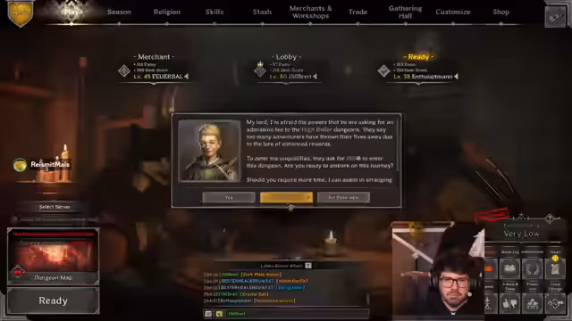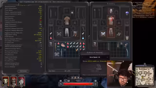 00:13:12Ein zentrales Thema des Streams ist die umfassende Organisation des Inventars, die über eine Stunde dauert. Es werden mehrere Charaktere wie der Cleric, Zorg und Warlock genutzt undTabs für einen geordneten Stash angelegt. Beim Teamaufbau wird eine Duo-Konstellation mit Fokus auf Healer und Nahkampf geplant. Es werden verschiedene Waffenoptionen wie Arming-Schwert oder Falke diskutiert und die strategische Verwendung von Resurrect-Spells erwähnt, um ein aggressives Spiel zu ermöglichen.