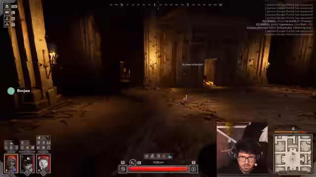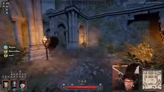 03:55:22Das Stream-Team analysiert die gegnerische Teamkombination und versucht, sich einen strategischen Vorteil im Raum zu verschaffen. Nach einer Diskussion über die Klassen des Gegnerteams, das über einen Fernkämpfer-Disadvantage verfügt, wird ein Plan zur Umgehung des Feindes über alternative Wege entwickelt. Die Streamer erkunden verschiedene Räume, um eine günstige Position zu finden, wobei die Tür von den Gegnern versperrt wird, was die Taktik erschwert. Es wird entschieden, den Bosskampf abzuwarten, um dann in den Raum zu springen und den Gegner zu überraschen.