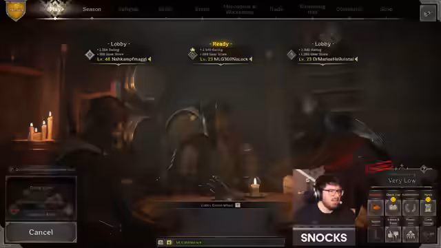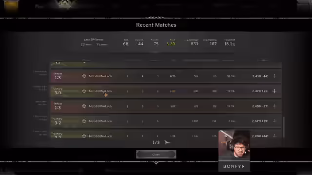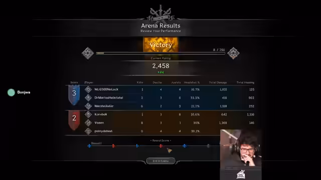 02:20:23Der Stream beginnt mit einem durchgängig hektischen Kampfgeschehen. Es dominieren schnelle Headshots, das Thema One-Tap und das Gefühl, ständig unter Druck zu stehen. Der Streamer kommuniziert ununterbrochen mit seinem Team, gibt Anweisungen zum Positionieren und fordert Unterstützungsanfragen wie Heal und Curs. Trotz guter Einzelleistungen, wie einem dichten Swarm, führt oft mangelnde Koordination und das unkoordinierte Nachrücken in gefährliche Lagen zu unnötigen Toden und einer defensiven Spielweise.