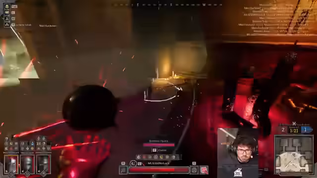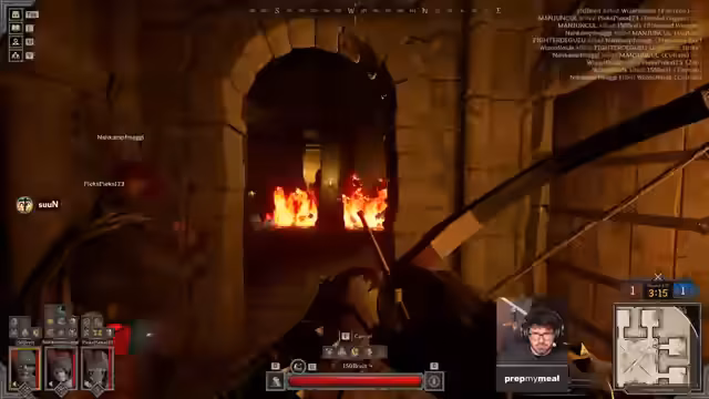 03:38:59Die Spielszene beschreibt ein intensives und dynamisches Kampfgeschehen in einem beengten Raum. Der Streamer befindet sich in einer prekären Situation, von Gegnern gedrängt und an einer Stelle festgefahren, was er als peinlich und wie Verrat beschreibt. Der Kampf verlagert sich ständig, wobei Teammitglieder getötet werden und neue Bedrohungen wie ein Ranger auftauchen. Die Kommunikation ist hektisch und auf das Überleben und das Eliminieren des aktuellen Ziels fokussiert.
