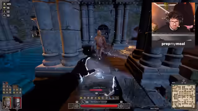 00:22:47Die geplante Arena-Nacht beginnt mit Warm-up-Runden. Der Streamer testet seine neue Sorcerer-Konfiguration und kämpft mit einem Zwergen-Skin. Trotz der technischen Sound-Probleme und eines anfänglichen Misserfolgs zeigt sich das Team beim Kampf gegen gegnerische Sorcerer, Cleric und Wizard erfolgreich. Die neue Kombination erweist sich als effektiv, besonders durch die Kombination aus Verlangsamung und hohem Magieschaden, der es den Gegnern unmöglich macht, zu entkommen.