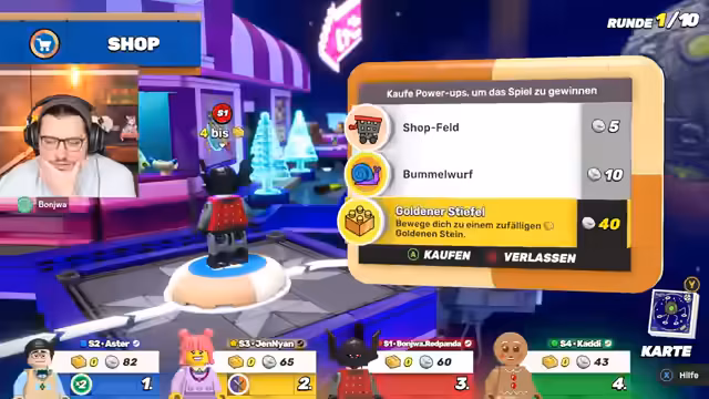 03:02:45Die Gruppe spielt weitere Minispiele in Lego Party, darunter ein 'Katzen-Shuttle'-Minispiel, das als die beste Map bezeichnet wird. Sie versuchen, goldene Steine zu sammeln, die auf verschiedenen Feldern verteilt sind, und nutzen Einkaufsgutscheine, um Vorteile zu erhalten. Es kommt zu einem 'Steinkampf', einem 2-gegen-2-Teammatch, bei dem die Spieler versuchen, so viele Steine wie möglich auf die eigene Seite zu schieben. Der Streamer und Leon bilden ein Team und entwickeln eine Strategie, um die Gegner zu blockieren und Steine zu klauen. Trotz eines deutlichen Sieges werden die goldenen Steine fair verteilt, sodass alle Spieler eine Chance haben. Sie spielen ein weiteres Minispiel namens 'Bungie-Boogie', bei dem sie mit Haken auf leuchtende Plattformen springen müssen. Der Streamer versucht, eine Strategie zu finden, um Punkte zu sammeln, wird aber von seinen Mitspielern gestört. Die Spiele sind unterhaltsam, aber auch herausfordernd, und die Spieler genießen die chaotische Natur der Minispiele, während sie versuchen, die meisten goldenen Steine zu sammeln.