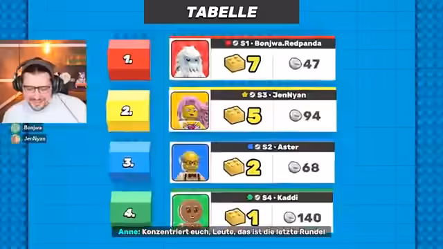 04:23:10Die Spieler stehen vor einem neuen Minispiel, bei dem sie Astronauten retten müssen, indem sie auf bestimmten Plattformen landen. Die Schwierigkeit des Spiels wird schnell deutlich, da die Charaktere immer wieder ins Wasser geschoben werden, was zu Frustration führt. Ein Spieler beklagt sich über die Hitboxen und die scheinbar unkontrollierbaren Bewegungen der Charaktere. Trotz der Schwierigkeiten versuchen sie, die Mechaniken zu verstehen und sich gegenseitig zu helfen, auch wenn dies nicht immer gelingt. Ein weiteres Minispiel erfordert das präzise Nachbauen von Mustern, was die Schnelligkeit und Koordination der Spieler auf die Probe stellt. Die Teams kämpfen um die vorderen Plätze, wobei die Geschwindigkeit der anderen Spieler bewundert wird. Die Dynamik zwischen den Spielern, insbesondere in den Team-Matches, wird thematisiert, wobei sowohl Zusammenarbeit als auch freundschaftlicher Wettbewerb im Vordergrund stehen.
