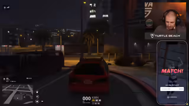 05:41:41Der Streamer navigiert in seiner Freizeit durch eine Dating-App, wobei seine Interaktionen von zynischen und sarkastischen Kommentaren geprägt sind. Parallel dazu wird der Stream von einem Raid eines anderen Kanals unterbrochen. Dieser Übergang markiert eine deutliche thematische und tonale Veränderung weg von der düsteren Erzählung und hin zu einem unbeschwerten, chaotischen Gameplay- und Social-Media-Fokus.