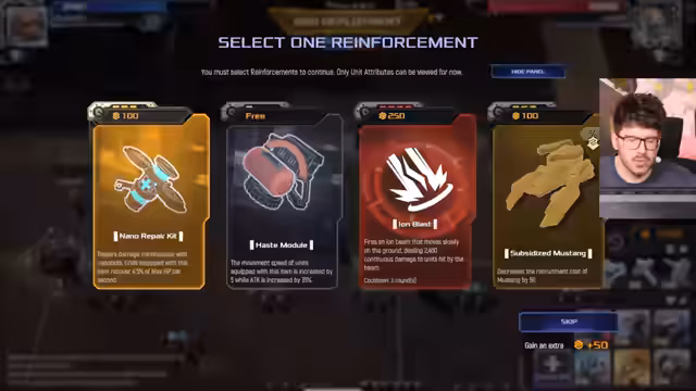 00:00:00Das Spiel beginnt mit der strategischen Platzierung von Nano Repair auf einem Scorpion. Es werden Überlegungen angestellt, welcher der beiden Einheiten der Vorteil geboten werden soll. Dabei wird die zukünftige Rolle der Einheiten in der Runde berücksichtigt. Die Wette auf einen Sieg der Seite wird aufgenommen, trotz der anfänglichen Unsicherheit.