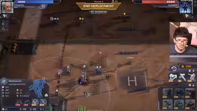 00:06:59Mit einer Runde Pause beginnt eine neue Partie. Es wird über die nächsten Einheiten nachgedacht, wobei Arclight oder Hunde favorisiert werden. Die eigene Armee zeigt sich sehr stark, sodass man aggressive Taktiken verfolgen kann. Die gegnerische Verteidigung mit Kanonen und Snipern wird als Problem identifiziert.