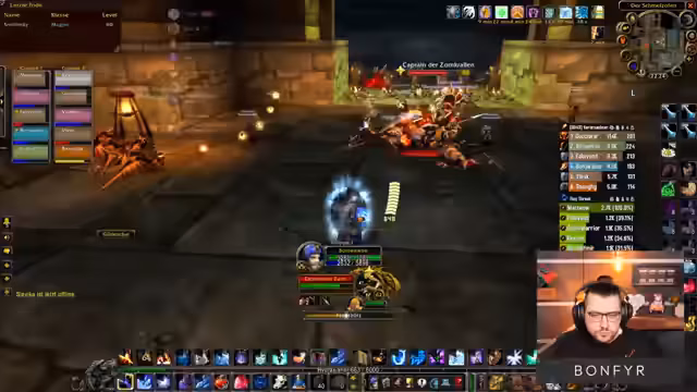 05:05:46Es wird eine komplexe Taktik gegen einen Boss ausgehandelt, die das Kiting des Bosses durch einen Tank umfasst. Dieser muss mit Abilities wie Eisblock agieren, um den Boss fernzuhalten, während die restliche Gruppe die Adds eliminiert. Nach der Add-Phase kehrt der Boss zurück und die Rolle des Haupt-Tanks wechselt. Es wird eine Feuerfläche (Flamestrike) erwähnt, die von der Melee-Gruppe verlassen werden muss. Der Fokus liegt auf dem Management von Debuffs wie 'Conflagration' und der Kommunikation, welcher Tank Heilung benötigt.