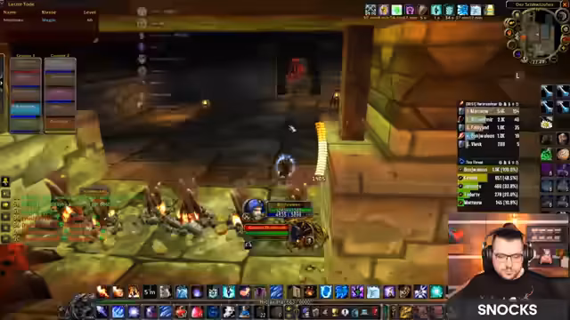 03:58:24Es wird ein Pull mit Leon und Matthäus gestartet, wobei sie auf ein bestimmtes Ding draufdrücken. Alle umliegenden, roten Mobs kommen auf sie zu und werden sofort von Leon kaputtgebombt. Der Feuerelementar, der oben steht, wird nach dem Töten der Wächter getötet und gilt als Hauptboss. Er macht eine Druck-Nova, die viel Schaden anrichtet, aber danach ist alles sicher. Es wird beschrieben, wo sich die Ranges befinden, und die Diskussion entsteht, warum man mit Kati spielt.