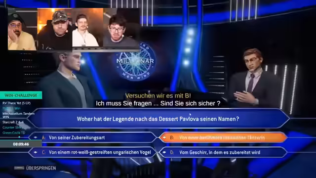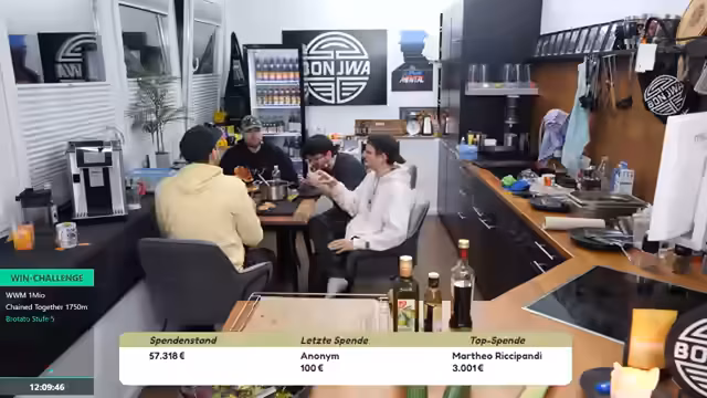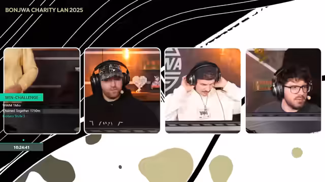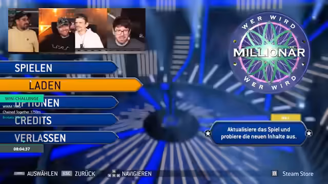 03:08:39Trotz der vielen Arbeit und Organisation nehmen sich die Streamer auch Zeit für entspannte Aktivitäten. Es wird erwähnt, dass sie seit drei Tagen versuchen zu zocken, aber meistens beim Schnacken bleiben. Sie haben bereits „Wer wird Millionär“ in der Küche gespielt, wobei echte Menschen angerufen wurden, um bei den Fragen zu helfen. Die letzte Frage, die eine Million Euro wert war, war überraschend einfach, während die davor als knifflig beschrieben wurde. Für zukünftige Spielrunden werden Ideen wie „Helldivers“ und „Brotato“ diskutiert, wobei die Limitierung auf drei Spieler bei manchen Games als hinderlich für die LAN-Events empfunden wird. Es wird auch über physische Spiele wie „Stühle stapeln“ oder ein selbst designtes Kartenspiel namens „Bonjo Dominic“ nachgedacht, bei dem Karten chronologisch eingeordnet werden müssen.