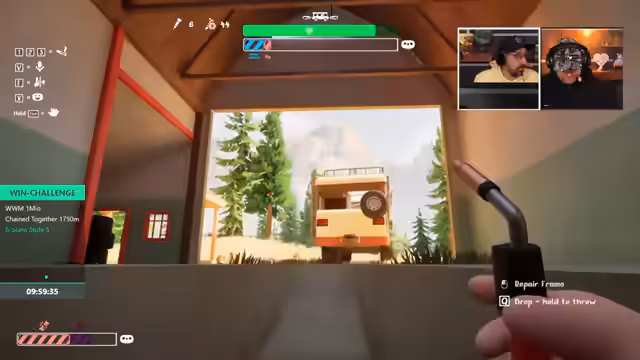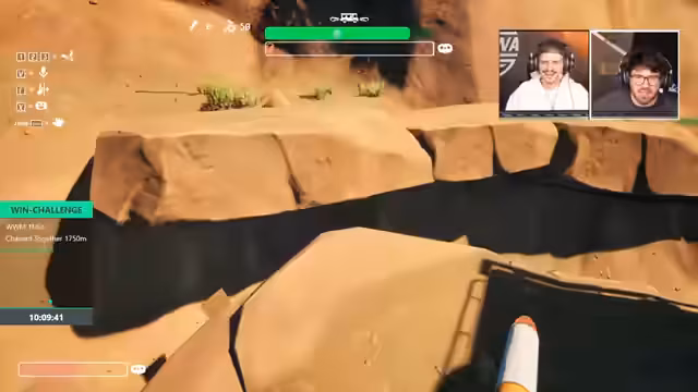 16:00:16Die Gruppe setzt ihre Fahrt fort und nähert sich einer bekannten Brücke, die in früheren Clips von anderen Streamern als schwierig beschrieben wurde. Der Fahrer entscheidet sich, die Brücke mit hoher Geschwindigkeit zu überqueren, um einen „krassen Jump“ zu schaffen. Nach einer erfolgreichen Überquerung, die als „fucking easy“ empfunden wird, erreichen die Spieler den zweiten Checkpoint. Die Freude über den Erfolg wird kurzzeitig durch einen Bären unterbrochen, der jedoch mit Bärenspray abgewehrt werden kann. Die nächste Herausforderung besteht darin, eine weitere Lücke mit Brettern zu überwinden. Die Spieler arbeiten zusammen, um die Bretter zu positionieren und das Fahrzeug sicher über die Lücke zu fahren. Sie sind motiviert, die verbleibenden Checkpoints zu erreichen und die Challenge erfolgreich abzuschließen, wobei sie feststellen, dass sie bereits zwei von fünf Checkpoints erreicht haben.