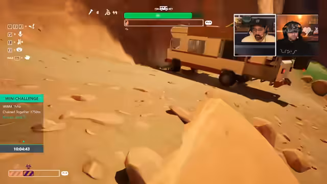 16:20:21Nachdem ein Jump-Puzzle erfolgreich gelöst wurde, steht die Gruppe vor dem Problem, dass ein Spieler in einer Grube feststeckt. Es wird diskutiert, wie man den Spieler und das Fahrzeug am besten aus der misslichen Lage befreit. Die Idee, die Winde von oben zu nutzen oder das Fahrzeug mit voller Geschwindigkeit herunterzufahren, wird in Betracht gezogen. Währenddessen wird eine neue Kassette mit einem 'Banger-Song' gefunden, der die Stimmung hebt. Die Spieler versuchen, das Fahrzeug geschickt über schwieriges Gelände zu manövrieren, wobei sie auf Teamwork und präzises Fahren angewiesen sind. Der vierte Checkpoint wird erreicht, was die Gruppe motiviert, weiterzumachen. Trotz kleinerer Rückschläge und der Notwendigkeit von Reparaturen bleiben die Spieler optimistisch und konzentriert auf ihr Ziel. Die humorvollen Kommentare und die gute Zusammenarbeit tragen zur positiven Atmosphäre bei.