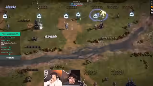 17:25:25Die Mechabellum-Partie erreicht ihren Höhepunkt, als die Spieler feststellen, dass sie gegen gegnerische Phantom Rays und Vulcans kämpfen müssen. Trotz fehlender Anti-Air-Einheiten und der Gefahr, die Runde zu verlieren, setzen sie auf ihre Fortress-Einheiten und deren Schilde, um den Angriffen standzuhalten. Die Spieler koordinieren den Einsatz von Lightning Storm und Barrieren, um den Gegner zu besiegen. Nach einem knappen, aber letztendlich siegreichen Match feiern sie ihren Tandem-Sieg und diskutieren über die beeindruckende Win-Challenge. Es wird beschlossen, als nächstes Chained Together zu spielen, obwohl einige Spieler das Spiel noch nie gespielt haben und es als schwierig empfinden. Die Herausforderung besteht darin, das Spiel ohne Pausen zu spielen, was die Komplexität erhöht. Die Spieler bereiten sich auf die neue Herausforderung vor, indem sie über die Spielmechanik und die Bedeutung der Zusammenarbeit sprechen. Es wird auch kurz über die Möglichkeit gesprochen, Warcraft 3 Funmaps am nächsten Tag zu spielen und über die Schwierigkeiten, die bei der Installation von Spielen auftreten. Die Diskussion über die Lasagne-Portionen und die Suche nach einem passenden Ersatz für eine gestrichene Challenge zeigt die lockere Atmosphäre im Stream.