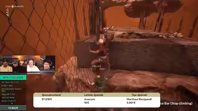 18:05:06Nach weiteren Anläufen gelingt es der Gruppe, eine schwierige Passage zu meistern, was als großer Erfolg gefeiert wird. Die Spieler sind erleichtert und glauben, das Schwierigste des Spiels hinter sich zu haben. Sie entwickeln eine Strategie, bei der sie bei Stürzen versuchen, auf realistische Landepunkte zu zielen, um nicht ganz nach unten zu fallen. Eine Passage mit beweglichen Plattformen wird angegangen, bei der die Spieler warten müssen, bis die Plattformen herankommen, um dann im richtigen Moment zu springen und weiterzulaufen. Die Gruppe macht gute Fortschritte und erreicht 180 Meter. Eine weitere knifflige Stelle erfordert schnelles Handeln, um einem herabfallenden Objekt auszuweichen. Die Spieler diskutieren, ob sie über Hindernisse springen oder laufen sollen, wobei unterschiedliche Präferenzen bestehen. Eine Passage, bei der man auf ein sich näherndes Objekt laufen und auf die andere Seite springen muss, wird erfolgreich gemeistert. Die Spieler nutzen einen Countdown, um ihre Aktionen zu synchronisieren. Eine weitere Herausforderung besteht darin, über bewegliche Teile zu springen, die den Weg blockieren. Die Gruppe muss präzise springen und landen, um nicht herunterzufallen. Trotz einiger Fehler und Frustrationen arbeiten die Spieler weiter zusammen, um die Hindernisse zu überwinden und Fortschritte im Spiel zu erzielen.