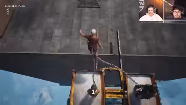 21:38:14Nachdem die Gruppe die unsichtbaren Plattformen erfolgreich gemeistert hat, äußert sie Erleichterung und Dankbarkeit für die Teamarbeit. Die Freude über den Erfolg ist groß, doch die nächste Herausforderung wartet bereits: ein Helikopterflug, der die Spieler über eine Distanz von 300 Metern transportieren soll. Es stellt sich heraus, dass die bisherige Win-Challenge bei 1500 Metern endete, was bedeutet, dass der aktuelle Abschnitt Neuland für alle ist. Die Spieler müssen sich auf eine Reihe von Sprungpads konzentrieren, die ein präzises Timing erfordern. Es wird beschlossen, sich aufzuteilen und abwechselnd zu springen, wobei ein Countdown zur Koordination eingesetzt wird. Die Mechanik der Sprungpads, die ein Vorwärtsfahren ermöglichen, wird kurz getestet, bevor die eigentliche Herausforderung beginnt. Die Unsicherheit über die neuen Abschnitte und die Notwendigkeit, sich auf unbekannte Mechaniken einzustellen, prägen die Atmosphäre.