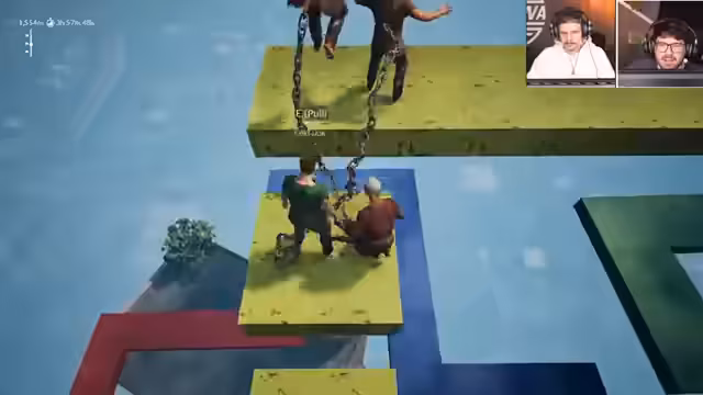 18:58:00Nach anfänglichen Diskussionen über die optimale Kameraeinstellung und die Sichtbarkeit aller vier Spieler, die sich als nicht umsetzbar erweist, wird der Fokus wieder auf das Spielgeschehen gelenkt. Es wird betont, dass sich alle auf das aktuelle Level konzentrieren sollen, um weitere Rückschläge zu vermeiden. Die Spieler versuchen, eine gemeinsame Strategie für die Plattformen zu finden, um nicht einzeln zu scheitern. Trotz der Bemühungen kommt es immer wieder zu Fehlern und Stürzen, was die Notwendigkeit einer besseren Koordination unterstreicht. Die Spieler erinnern sich gegenseitig daran, zusammenzuarbeiten und nicht voreilig zu handeln, um den Fortschritt nicht zu gefährden.