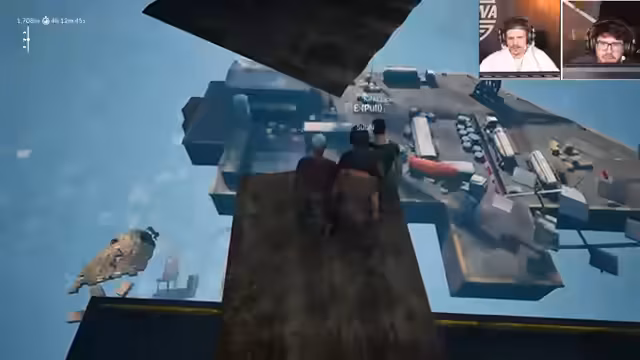 16:14:51Die Gruppe erreicht ein Gebiet namens 'Private Property', wo sie hoffen, einen Safe-Spot oder Checkpoint zu finden. Sie entdecken Bier und Bären-Spray, was zu einer Diskussion über die Effekte dieser Gegenstände führt. Die Landschaft wird bewundert, und die Spieler genießen den Ausblick, bevor sie eine riesige Brücke sehen, die als 'Endgame-Content' vermutet wird. Sie entdecken einen Aufzug, der Bretter benötigt, um das Fahrzeug zu transportieren. Beim Versuch, Bretter in den Aufzug zu legen, löst ein Spieler versehentlich eine Mine aus, was für einen Schreckmoment sorgt. Trotz des Vorfalls wird die Situation mit Humor genommen, und die Spieler setzen ihre Reise fort, indem sie den Aufzug nutzen, um das Fahrzeug sicher nach oben zu befördern. Die Teamarbeit ist entscheidend, um solche unerwarteten Hindernisse zu überwinden und den Fortschritt zu sichern.