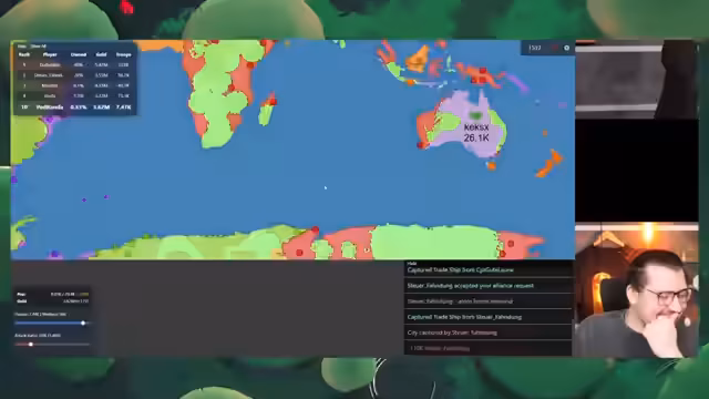 02:48:34Es wird ein weiteres Spiel gestartet, mit dem Ziel, Grönland zu erobern. Viele Spieler versammeln sich in der Lobby, um teilzunehmen. Nach dem Start des Spiels wird zunächst versucht, sich auszubreiten und die Wirtschaft zu stärken. Es wird festgestellt, dass ein anderer Spieler sehr groß ist und eine Bedrohung darstellt. Es kommt zu Konflikten mit anderen Spielern, die das eigene Gebiet angreifen. Es wird versucht, sich zu verteidigen und gleichzeitig zu expandieren. Es wird festgestellt, dass ein anderer Spieler das gesamte eroberte Land wegnimmt. Es wird versucht, die gute Laune zu bewahren, trotz der schwierigen Situation. Es wird beschlossen, eine wichtige Position einzunehmen, um sich einen Vorteil zu verschaffen. Es wird festgestellt, dass ein anderer Spieler sehr viel Geld hat und es wird versucht, in Städte zu investieren. Es wird versucht, sich mit anderen Spielern zu verbünden, um gemeinsam gegen stärkere Gegner vorzugehen. Es wird festgestellt, dass ein anderer Spieler ein Betrüger ist und es wird beschlossen, gegen ihn vorzugehen. Es kommt zu einem Konflikt mit einem anderen Spieler, der Truppen abfängt. Es wird versucht, sich zu erholen und das eigene Gebiet zu sichern. Es wird ein Bündnis mit einem anderen Spieler geschlossen, um gemeinsam gegen einen stärkeren Gegner vorzugehen.