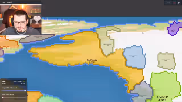 02:15:50Es wird ein neues Spiel gestartet, und es wird versucht, einen guten Startplatz zu finden, an dem nicht viele andere Spieler sind. Die Attack Ratio wird reduziert und die Produktion erhöht, um sich schnell auszubreiten. Es wird versucht, so viel Fläche wie möglich einzunehmen, um einen Vorteil gegenüber den anderen Spielern zu haben. Es wird festgestellt, dass die meisten Gegner KIs sind. Es werden kleine Inseln erobert, um das eigene Gebiet zu vergrößern. Es wird ein Bündnis mit einem anderen Spieler geschlossen, um gemeinsam gegen einen stärkeren Gegner vorzugehen. Es wird versucht, die NPCs auf dem Kontinent auszuschalten, damit sie sich gegenseitig kaputt machen. Es wird ein Hafen gebaut, um den Handel zu fördern. Es wird ein Kriegsschiff gebaut, um die Seewege zu sichern. Es wird festgestellt, dass ein anderer Spieler sehr stark ist und das eigene Gebiet bedroht. Es kommt zu Kämpfen mit mehreren Gegnern gleichzeitig, was die Situation erschwert. Es wird versucht, sich zu verteidigen und gleichzeitig zu expandieren. Es wird erkannt, dass der Kontinent nicht gehalten werden kann und es wird versucht, den Gegner zu schwächen, indem man in sein Gebiet eindringt.