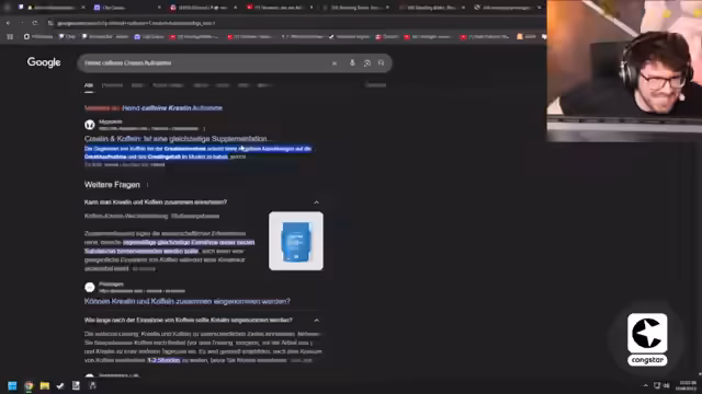 05:07:23Der Streamer diskutiert verschiedene Verschwörungstheorien wie 9/11, die Mondlandung und Epstein. Er berichtet von seiner eigenen Erfahrung als Schüler, als seine Englischlehrerin eine 'Inside Job'-Theorie präsentierte. Danach wechselt er das Thema zu seinem Kreatin-Konsum, wobei der Chat ihn über eine mögliche Wechselwirkung mit Koffein aufklärt. Dies führt zu einer Verwirrung und einer intensiven Diskussion über die wissenschaftlichen Erkenntnisse und seine bisherigen Annahmen.