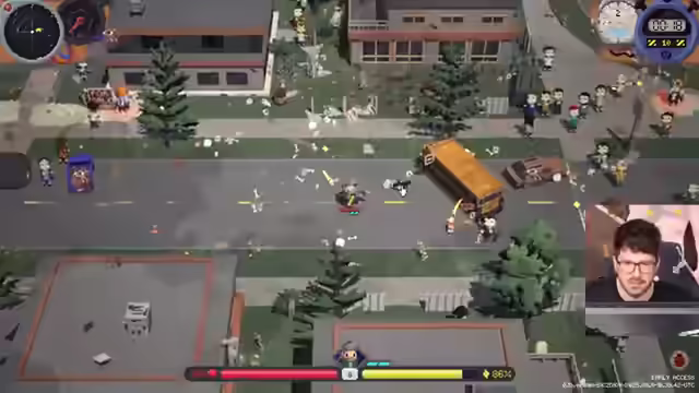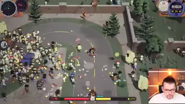 03:21:10Es werden Feuerschuhe gefunden, mit denen man beim Dashen Bananen wirft. Es wird betont, dass man nicht von den Zuschauern geboostet werden will. Das Spiel hat einen guten Suchtfaktor. Ein Revolver wird gefunden. Es wird Inventory Space benötigt. Es wird auf Zapfsäulen geschossen, um alles zu bekommen. Es werden Charger-Zombies erwähnt. Ein Feuerwerk und zwei weitere Items werden gefunden, darunter ein Dartfire und ein Revolver. Items werden im Laufe des Levels restockt. Es wird Level 2 erreicht. Es wird überlegt, die Pistolen loszuwerden und auf Revolver zu wechseln. Die Feuerschuhe sollen mitgenommen werden. Es soll möglichst viel Geld für den Shop gespart werden. Es wird Loot gesammelt. Ein blauer Revolver wird gefunden. Es wird erklärt, dass man nicht so viele Level-Ups braucht, da in den Leveln viel Loot gedroppt wird. Ein Loot Drop wird erwähnt. Es werden Schuhe gefunden. Es wird fast vollgetankt. Eine MP wird mitgenommen. Es werden nochmals Feuerschuhe gefunden. Ein Staubsauger wird eingesetzt. Ein großer Inventarplatz wird gefunden. Tag 3 ist geschafft. Es wird überlegt, welche Items verkauft werden sollen. Ein Magnet wird gefunden, der die Sammelreichweite für Beute erhöht. Es wird gehofft, dass man bald re-rollen kann. Es wird Inventory Space benötigt, um die Waffe zu verbessern. Es wird erwähnt, dass es genug gibt. Es wird überlegt, die Feuerwehr als potenzielles Item zu nutzen. Der Magnet wird ausprobiert. Das Damage ist gerade sehr low. Es wird Dynamit gefunden. Es wird Inventory Space und Feuerschuhe gefunden. Es wird ein paar Upgrades benötigt. Eine Zwischenstage kommt. Es wird befürchtet, den DPS-Race zu verlieren. Eine Batterie wird gefunden, die Kettenblitze schleudern kann. Es wird ein Reservemagazin für die MP mitgenommen. Es wird ein P genommen. Es wird festgestellt, dass der Run terrible ist, da kein Damage und keine Rucksäcke gefunden wurden.