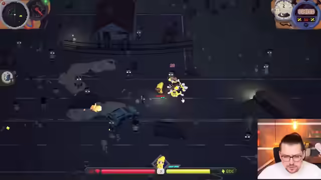 06:48:56Die MP wird nun als die bessere Wahl angesehen, da sie mehr Schaden verursacht als die Revolver. Ein Drop bringt mehr Platz und erhöht die Angriffsgeschwindigkeit von Fernkampfwaffen. Es wird überlegt, Rollerblades zu verbessern. Es gibt Magneten, die XP einsammeln. Der Bus wird gesucht, und es wird fast gestorben. Der Pfeil am Charakter wird spät gesehen. Die MP wird nun als gut befunden. Es wird überlegt, ob auf der MP geblieben wird oder die Waffen upgegradet werden sollen. Es wird lieber alles verkauft. Das Feuerzeug soll repariert werden, um die Chance zu erhöhen. Die grüne Pumpe wird repariert. Es wird auf der Waffe geblieben. Es wird überlegt, ob Feuerwerk für die Uzi benötigt wird. Die Rollerblades haben keine Aktivierung und machen nur schneller. Es wird die Messer verkauft und bestätigt.