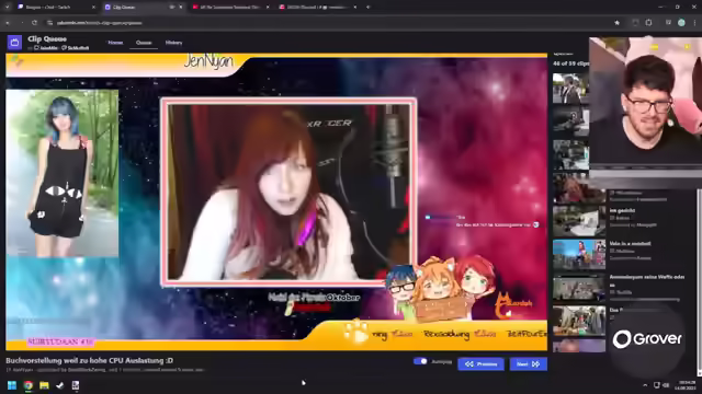 05:14:15Nach einer Hochzeit, auf der es nicht genug zu essen gab und Eddie und Schreck ihn hänselten, holte sich der Streamer am Bahnhof einen Mr. Tom. Beim Betreten der Bahn wurden er und seine Begleitung von einer Zuschauerin erkannt, die sich als Fan outete. Trotz des vollen Mundes des Streamers mit Mr. Tom war die Begegnung positiv. Es gab auch eine Diskussion über die Zwiebel, die Sonja aß. Der Streamer beendete den Stream mit einem unerwarteten Ereignis im Spiel, das er spielte. Der Abend endete mit einer humorvollen Anekdote über eine zufällige Begegnung mit einem Fan und einem Einblick in die kulinarischen Gewohnheiten anderer Streamer. Die Interaktion mit der Zuschauerin wurde als besonders positiv hervorgehoben, da sie zeigte, dass es auch normale Fans gibt, im Gegensatz zu den oft als "weird" wahrgenommenen Chat-Teilnehmern.