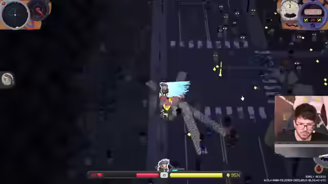 02:31:47Es wird erwähnt, dass es sehr viel Benzin, aber wenig Beute gibt. Die Twitch-Indikation, bei der Zuschauer Sachen auswählen können, wird abgelehnt, da das Highscore-Jagen nicht durch Twitch-Drops beeinflusst werden soll. Es wird erklärt, dass die Twitch Extension sich wie Cheaten anfühlt, da Zuschauer einen boosten können. Ein Zielfernrohr und ein Revolver werden mitgenommen, um einen guten Clear Speed zu haben. Es wird überlegt, ob zwei unterschiedliche Revolver besser sind als ein lila Revolver. Die Twitch Drops erhöhen das Gefahrenlevel. Es wird erwähnt, dass es sich geiler anfühlt, wenn der aktuelle Rekord ohne die extra Twitch-Drops gebrochen wird. Es wird ein bisschen hin und her überlegt, wie die Items am besten angeordnet werden sollen. Es wird erwähnt, dass das Spiel von Henno ist und dass man auf jeden Fall reinknallen wird. Es wird Benzin gesucht und es sind schon viele Gegner dabei. Es wird erklärt, dass die Reload-Time durch den Sheriff-Stern mit jedem Player-Level reduziert wird. Es wird erwähnt, dass man mit dem aktuellen Build guten Schaden macht, aber irgendwie Clearspeed oder AOE fehlt. Ein Staubsauger wird für die nächste Runde aufgehoben. Es wird erwähnt, dass bald wieder eine Händlerin kommt.