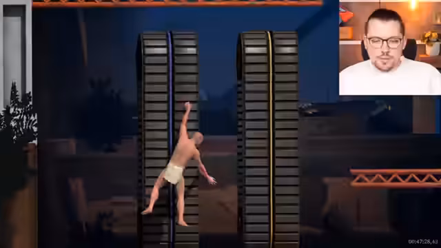 00:35:36Es wird die neue Map in 'A Difficult Game About Climbing' angespielt. Ziel ist es, die neue Map bis zum Eintreffen von Matteo um 20 Uhr durchzuspielen. Es werden Wetten aufgestellt, ob bestimmte Checkpoints in vorgegebener Zeit erreicht werden können. Die erste Wette, den ersten Checkpoint bis 17 Uhr zu erreichen, wird gewonnen. Es folgen weitere Kletterpassagen, die sich als herausfordernd erweisen, insbesondere das Überwinden von Kakteen. Die Steuerung des Spiels wird als anstrengend beschrieben, da sie Verkrampfungen in der Hand verursacht. Trotzdem werden weitere Checkpoints erreicht und neue Wetten abgeschlossen. Die Schwierigkeit des Spiels und die damit verbundenen Herausforderungen werden humorvoll kommentiert.
