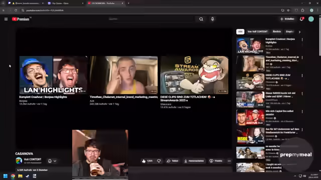 00:59:26Der Stream geht in eine Analyse des „Vollcontent“-Videos über, das mit einer beeindruckenden Synchronstimme beginnt. Marco äußert seine Überraschung über die stimmlichen Fähigkeiten der Person und kommentiert die Qualität der Produktion. Während des Videos wird die Frage aufgeworfen, warum Franzi Kim versetzt hat, was zu Spekulationen über mögliche Beziehungsdramen führt. Marco scherzt über die Häufigkeit bestimmter Bilder von ihm in den „Vollcontent“-Clips und droht humorvoll, die Festplatte des Cutters zu verbrennen. Er reflektiert über die Darstellung von Asta und sich selbst in den Videos und wie er selbst oft in peinlichen Situationen gezeigt wird. Es folgen Diskussionen über Handshakes und High-Fives, die er in Deutschland verbieten möchte, sowie über die Herkunft von Witzen und Wortspielen, insbesondere im Zusammenhang mit Lilly und Sonja. Marco kommentiert auch die „penislastige“ Natur einiger Witze und fordert mehr „Vaginen“ in den Diskussionen. Die Analyse des Videos wird immer wieder von persönlichen Anekdoten und humorvollen Einwürfen unterbrochen, die die Interaktion mit der Community lebendig halten.
