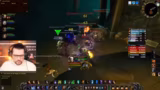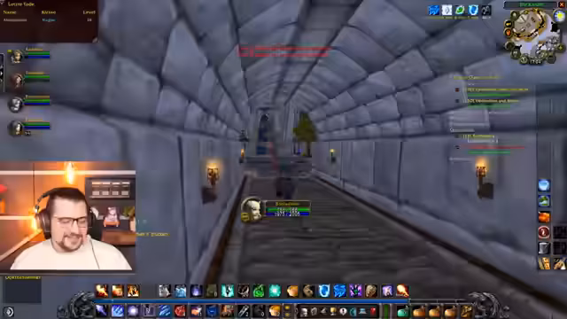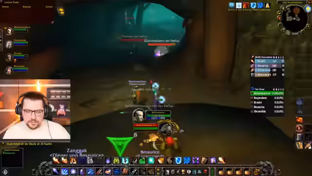 10:56:51Der Kampf gegen den Endboss beginnt extrem chaotisch. Die Taktik bricht zusammen, da die verwandelte Person nicht schnell genug geschiebt wird. Der Streamer, der als Heiler agiert, ist komplett überfordert, kann die notwendigen Dispels nicht rechtzeitig ausführen und verliert den Überblick über die Situation. Er muss mehrere Male den Tank schieben, wodurch er selbst handlungsunfähig wird und das Überleben der Gruppe nur durch Zufall gesichert wird. Es kommt zu hektischen Rufen im Voice-Chat, da der Kampf kurz vor einem Wipe steht.