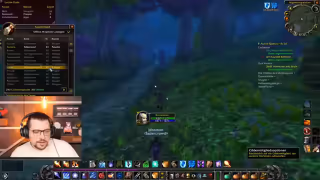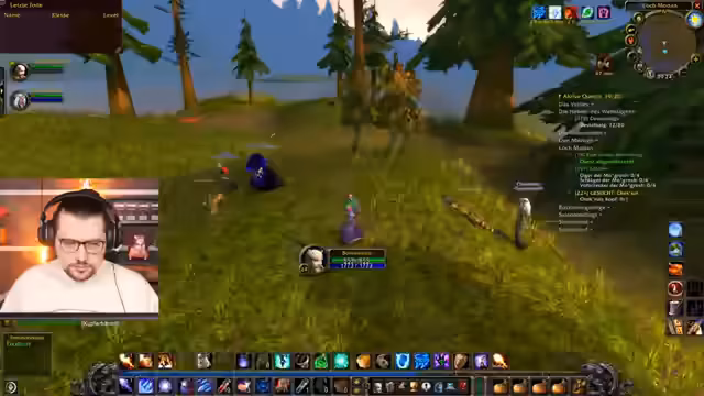 15:47:25Nach dem Feuerwerk wird das Event fortgesetzt. Streamer und Zuschauer erkunden weiter die Spielwelt, nehmen neue Quests an und beginnen mit dem Leveln neuer Charaktere. Die Stimmung bleibt trotz der anfänglichen technischen Probleme positiv. Es werden der Mangel an freiem Inventarplatz, das Leveln und die Kooperation in der Gruppe thematisiert, während man gemeinsam durch Ashenvale questet.