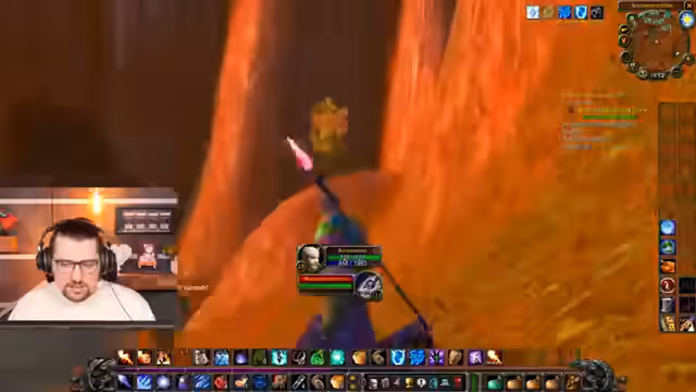 18:00:22Der Streamer konzentriert sich auf eine schwierige Quest, die einen Boss im Gebiet 'Glutnebelgipfel' erfordert. Das Problem besteht darin, dass der Weg dorthin sehr gefährlich ist. Sie müssen eine Horde-Wache umgehen und sich durch ein unwegsames Gelände bewegen, um nicht aufzufallen oder von NPCs entdeckt zu werden. Der Streamer führt den Weg an, während sein Mitspieler gefolgt wird. Das Gelingen der Mission hängt von einer präzisen Routenwahl und dem Vermeiden von Aggro ab, da jeder Fehler zum Tod des Charakters führen könnte. Der Streamer betont die Gefahr des Geländes, insbesondere die Gefahr, abzustürzen.