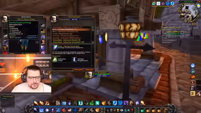 16:59:21Zu Beginn des Streams diskutiert der Streamer über seine Spielfähigkeiten und die Eigenschaften seiner Spielfigur im Spiel. Er bemerkt, dass seine Willenskraft als Schurke erhöht ist, ist sich aber unsicher über die genauen Vorteile dieser Eigenschaft. Lilly erwähnt, dass sie in World of Warcraft ins neue Jahr startet, woraufhin der Streamer denkt, dass dies ein guter Weg sein könnte, den Jahreswechsel zu verbringen. Er schlägt vor, das Spiel mit einem Mistelzweig zu spielen, eine Tradition, die er leider nicht umsetzen kann. Der Stream ist von allgemeinen Chatinteraktionen und dem eifrigen Gameplay geprägt, bei dem der Streamer seine Ausrüstung und Fähigkeiten kontinuierlich analysiert.