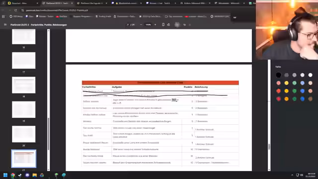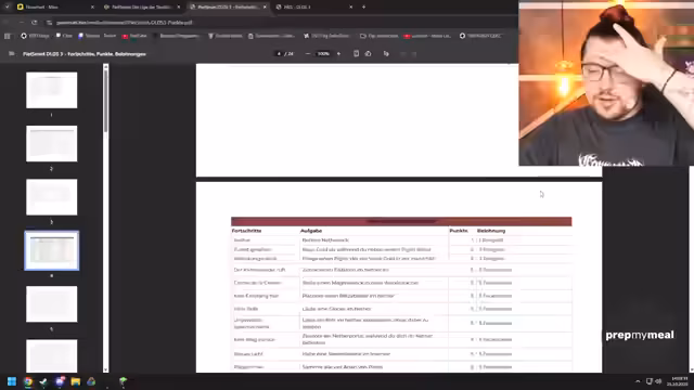 00:16:29Der Streamer begrüßt die Zuschauer zu einem neuen Stream auf Bonjwa und kündigt die Teilnahme an der „Liga der Sterblichen“ an, einem No-Death-Minecraft-Event. Er wird zusammen mit Kapuzenwurm antreten, wobei das persönliche Ziel ist, besser als alle Teams der Pietsmiet zu sein und es in die Top 10 zu schaffen. Aktuell liegt die Top 10 bei 700 Punkten. Das Event wird auf der Website petream.live erklärt, wo auch die Tabelle und die Fortschritte der Teams einsehbar sind. Punkte werden durch das Erfüllen von Achievements gesammelt, wobei jedes Teammitglied jedes Achievement einmal holen kann, was insgesamt über 6.000 Punkte ermöglicht. Die Liste der Achievements ist diesmal deutlich länger und umfasst nicht nur reine Minecraft-Erfolge, sondern auch viele selbst ausgedachte Aufgaben der Pietsmiet. Für jedes erfüllte Achievement gibt es Belohnungen wie Eisen, Gold oder Diamanten. Der Streamer hat bereits mit einem Planungs-Tool begonnen, konnte aber aufgrund von Serverproblemen nicht alles fertigstellen. Er bittet die Community um Unterstützung durch Backseating, da es sehr viele Achievements gibt, die er möglicherweise übersehen könnte. Der Eventstart ist um 15 Uhr, und er wird sich um 14:30 Uhr mit Kapuzenwurm treffen, um letzte Absprachen zu treffen. Für das Event hat er Optifine und ein Fullbright Texture Pack installiert, da dies laut Regeln erlaubt ist, um auch im Dunkeln gut sehen zu können.