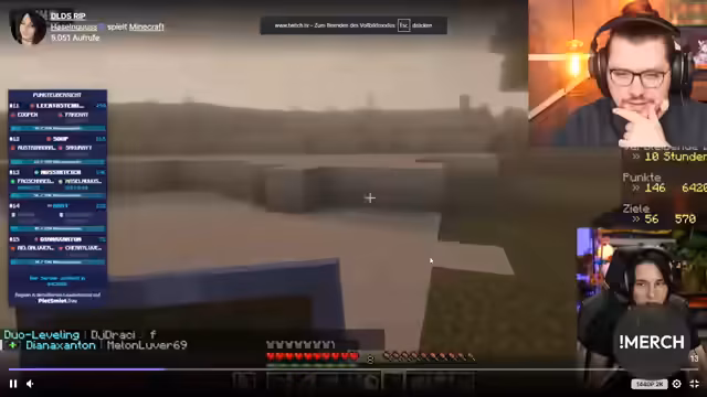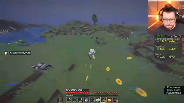 02:50:59Die Streamer diskutieren über die Benutzeroberfläche (UI) des Spiels, wobei ein Streamer mit einer ungewöhnlich großen UI spielt. Es wird vorgeschlagen, die UI zu verkleinern, um mehr vom Spielgeschehen zu sehen, was jedoch aufgrund von Gewohnheit und Alter zunächst abgelehnt wird. Währenddessen beginnen sie mit grundlegenden Aufgaben im Spiel, wie dem Zähmen von Pferden mit Karotten und dem Züchten von Schweinen und Kühen mit Weizen. Sie sammeln erste Punkte durch das Erfüllen kleiner Achievements, wie das Füttern von Tieren. Die Interaktion mit dem Chat zeigt, dass viele Zuschauer bereits Erfahrung mit den UI-Einstellungen und den verschiedenen Spielmechaniken haben und hilfreiche Tipps geben. Es wird auch über das Anzünden von Schweinen für ein Achievement gesprochen, was jedoch durch einsetzenden Regen erschwert wird. Diese frühen Spielphasen sind geprägt von der Anpassung an die Spielumgebung und dem Sammeln erster Ressourcen und Punkte, während die Streamer sich mit den grundlegenden Mechaniken vertraut machen und dabei immer wieder auf die Unterstützung des Chats zurückgreifen.