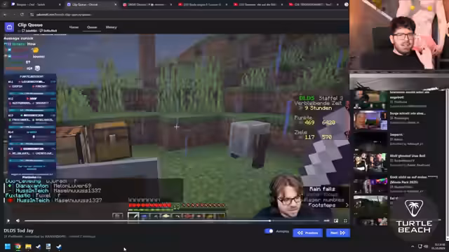 00:22:01Der Streamer überlegt, sich strategisch von Kapuzenwurm aufzuteilen, um die Effizienz zu steigern und Fehler der letzten Teilnahme zu vermeiden. Er erinnert sich, dass er und Matteo beim letzten Mal zu viel zusammen unterwegs waren, was zu Problemen führte, da er schneller vorankam und Matteo warten musste. Diesmal möchte er, der mehr Erfahrung im Durchspielen von Minecraft hat, sich möglicherweise auf die Hölle konzentrieren, während Kapuzenwurm sich um Aufgaben in der Oberwelt kümmert. Das Spiel findet auf Version 1.21.8 statt. Punkte und Belohnungen können jederzeit im Spiel mit dem Befehl /DLDS oder der Taste L eingesehen werden. Erlaubte Modifikationen sind Fullbright Texture Packs, Optifine und Sodium für Performance sowie Shader ohne Vorteile. Die Sichtweite ist auf maximal 20 Chunks eingestellt. Der Server ist täglich von 15 bis 23 Uhr spielbar, und man kann jederzeit beitreten, jedoch nur als Team starten. Wichtig ist, dass bei Sammelaufgaben die Items nicht dauerhaft im Inventar sein müssen; es reicht, sie einmal gehabt zu haben. Truheninhalte sind spielergebunden, sodass nichts weggelootet werden kann, wenn man später startet. Griefing oder aktives Verbünden ist verboten, aber Ausloggen kurz vor dem Tod, um sich zu retten, ist erlaubt. Dies könnte genutzt werden, um sich aus gefährlichen Situationen wie Lavastürzen zu befreien, während der Teampartner Hilfe organisiert.