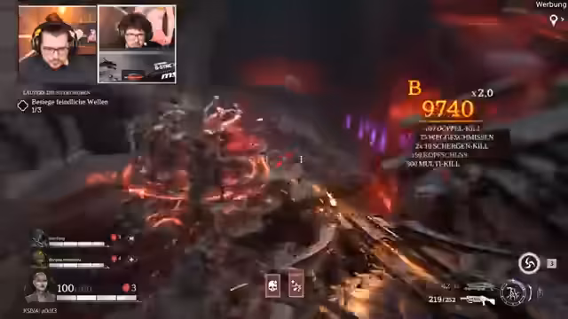 09:05:00Die Spieler navigieren durch schmale Gänge und offene Bereiche, stets auf der Suche nach Heilung und Munition. Die Diskussionen drehen sich um die Effektivität verschiedener Waffen und Fähigkeiten, insbesondere des Bumerang-Schusses, der sich als nützlich gegen Schildträger erweist, und der Pfahlkanone, die durch Schilde hindurchschlägt. Die ultimative Stromfähigkeit wird für den Bosskampf aufgespart, was sich als taktischer Vorteil erweist. Trotzdem kommt es zu knappen Situationen, in denen die Spieler exekutiert werden müssen, um Bosse zu besiegen. Die Schwierigkeit des Spiels wird währenddessen heimlich erhöht, was die Spieler jedoch kaum bemerken, da sie sich als sehr gut einschätzen. Die Teamarbeit und die Nutzung von Stromfähigkeiten sind entscheidend, um die zahlreichen Gegnerwellen und Bosse zu überwinden, während gleichzeitig auf Heilung und Munition geachtet wird.