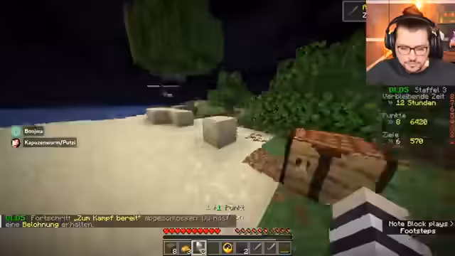 02:07:07Die Spieler suchen nach Faden, um Säcke herzustellen, was als wichtig erachtet wird. Währenddessen wird die Frage nach dem Geruch eines Creepers humorvoll diskutiert, wobei Vorschläge von Erde und Gras bis hin zu HDMI-Kabeln reichen. Die Nacht bricht herein, und es wird beschlossen, ein Schiff zu erkunden, das viel Eisenloot verspricht. Die gefundenen Eisenklumpen können zu Eisenbarren verarbeitet werden, was die Möglichkeit eröffnet, eine komplette Eisenrüstung herzustellen. Ein Spieler schließt ein Achievement ab, das 20 Punkte einbringt. Die Priorität liegt nun darauf, sich mit Eisenrüstung auszustatten, wobei überschüssiges Eisen geteilt wird. Die Goldstiefel werden für spätere Abenteuer im Nether aufbewahrt. Es wird auch ein Drowned Zombie entdeckt, der für ein Achievement umgehauen werden kann, und die Spieler achten auf ihre Luft unter Wasser, während sie weiter schwimmen, um das Schwimm-Achievement zu vervollständigen.