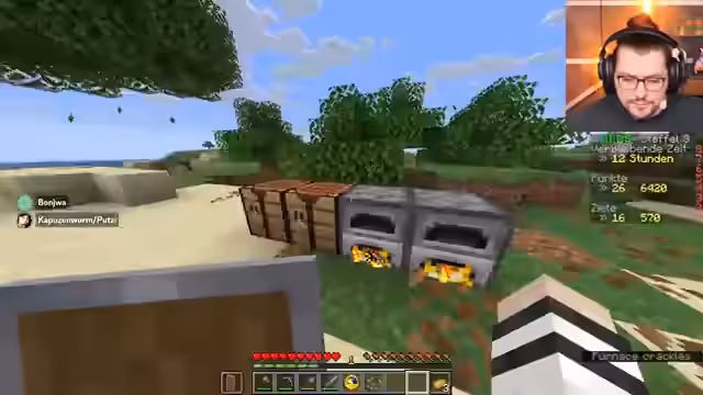01:30:57Die Spieler begannen mit der Schmelze von Eisen in einem Ofen, um sich weiter auszurüsten. Dabei stellte sich heraus, dass Quest-Belohnungen nur an den ersten Spieler vergeben wurden, der die Quest abschloss. Währenddessen tauchten erste Zombies auf, die jedoch durch das Tageslicht verbrannten. Ein Händler wurde entdeckt, dessen Interaktion ebenfalls Teil einer Quest war. Die Spieler sammelten Holz und Blumen, da diese für zukünftige Aufgaben benötigt wurden. Es wurde ein kurzer Rückblick auf den 'dümmsten Tod' in früheren Minecraft-Runden gegeben, wobei ein Spieler erwähnt wurde, der von einem Creeper überrascht wurde, während er aus dem Spiel tabte. Die Spieler planten, ein Bündel zu craften, um zusätzlichen Inventarplatz zu schaffen, wofür Spinnenfäden und Leder benötigt wurden.